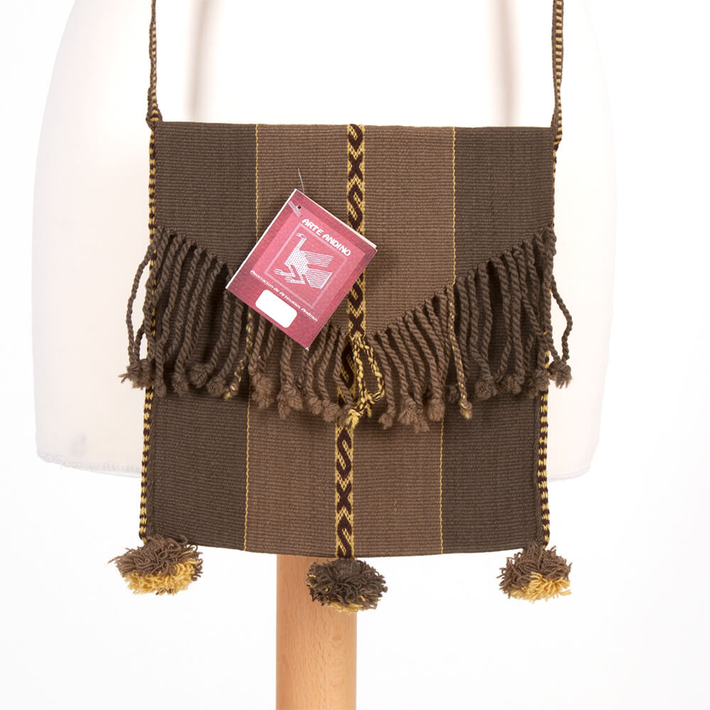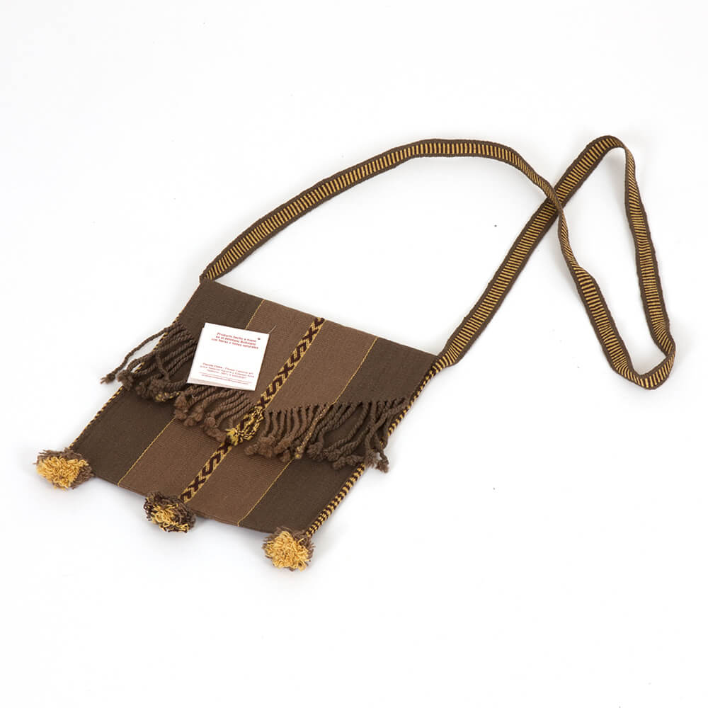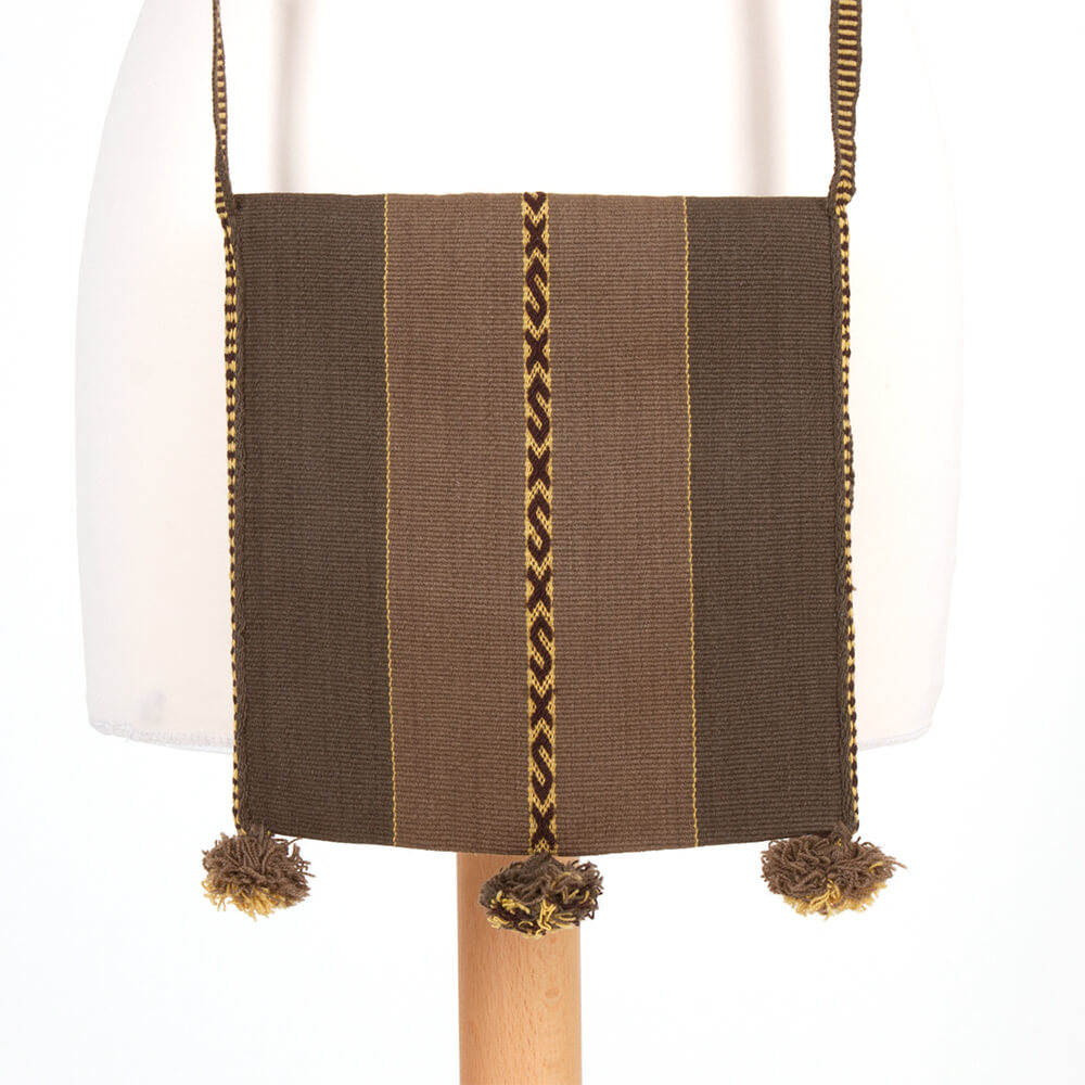 Die Umhängetasche „Chuspa Mediana“ ist eine leichte Tasche aus feiner Schafswolle mit traditionellem Muster des Altiplano. Die Bewohner des bolivianischen Hochlandes verwenden diese Taschen häufig bei der Ernte von Coca-Blättern.